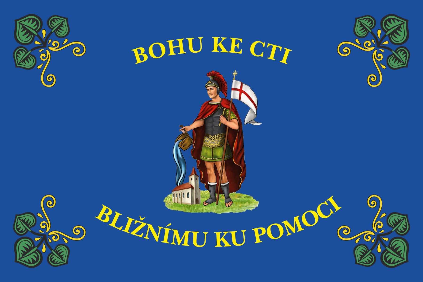 Hasičská vlajka s Floriánem - modrá