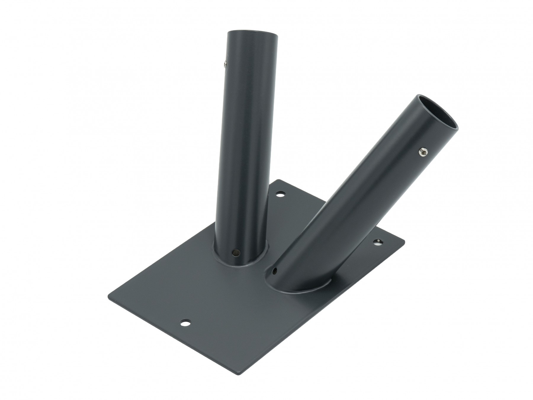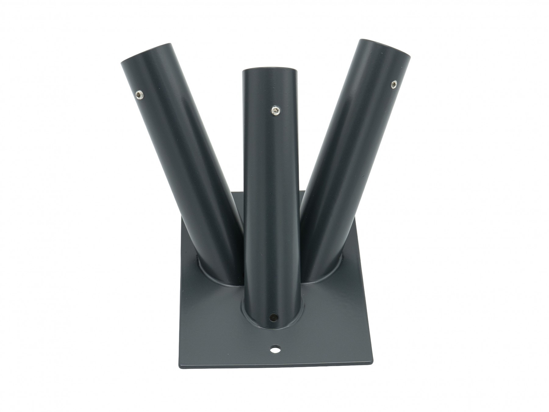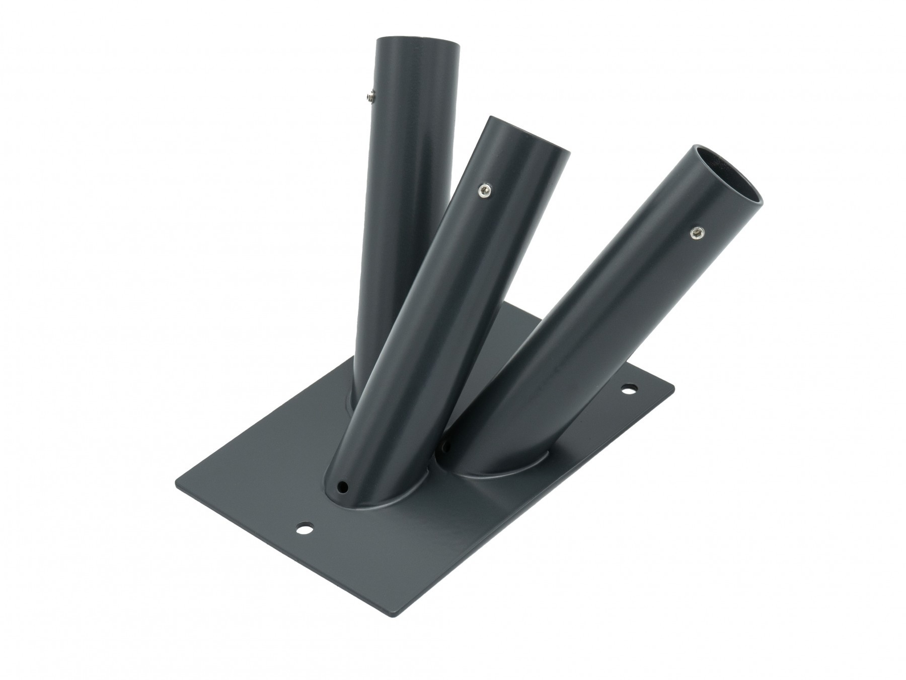 Nerezový fasádní držák na vlajku v moderní antracitové barvě na stěnu se základnou 15x10 cm a třemi otvory na navrtání do fasády. Držáky jsou vhodné na nabízené žerdě. Otvor má průměr cca 2,6 cm. Doporučujeme kovovou žerď s koulí či dřevěnou 2 m žerď.