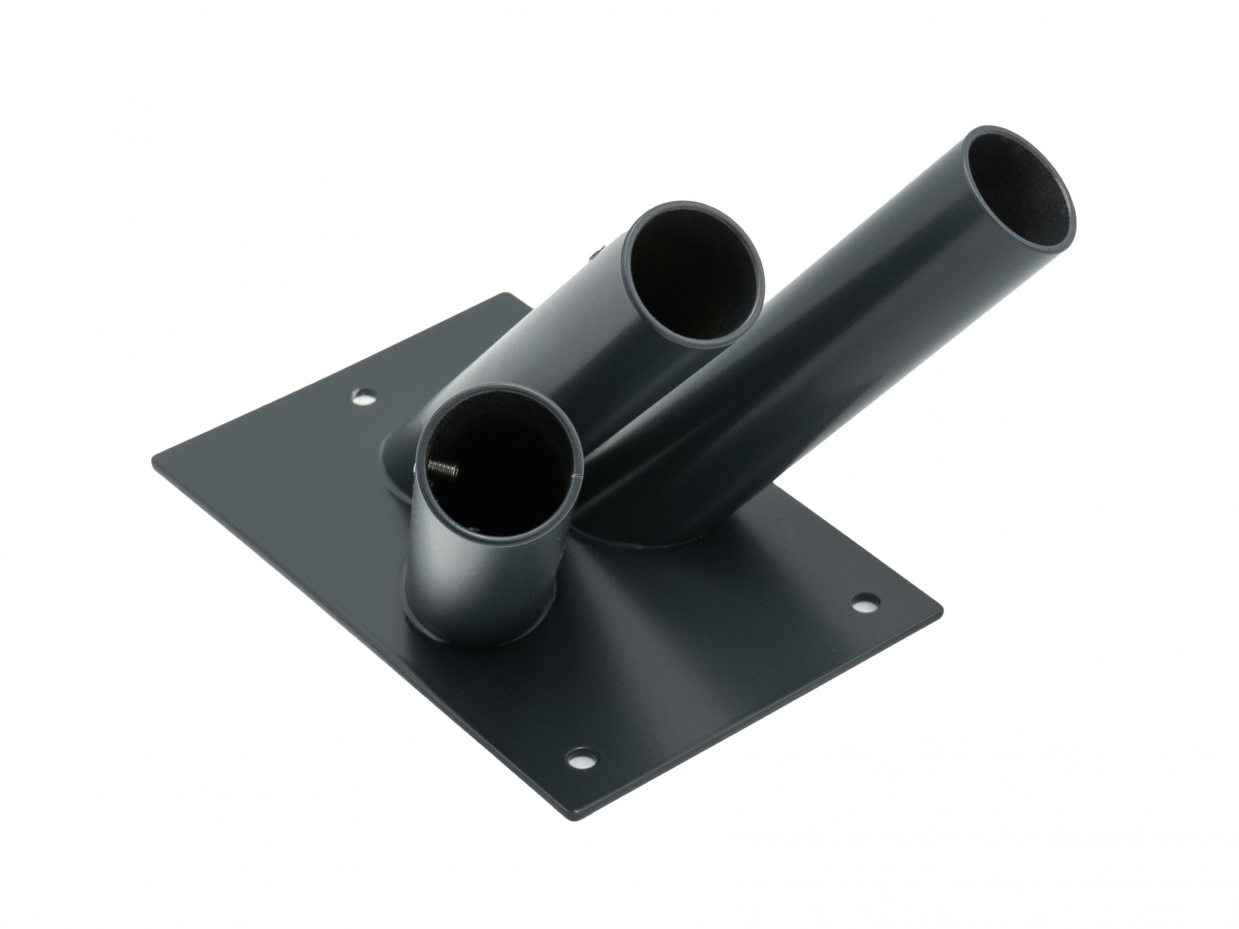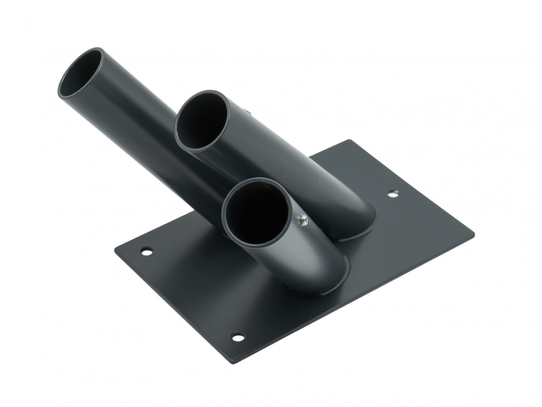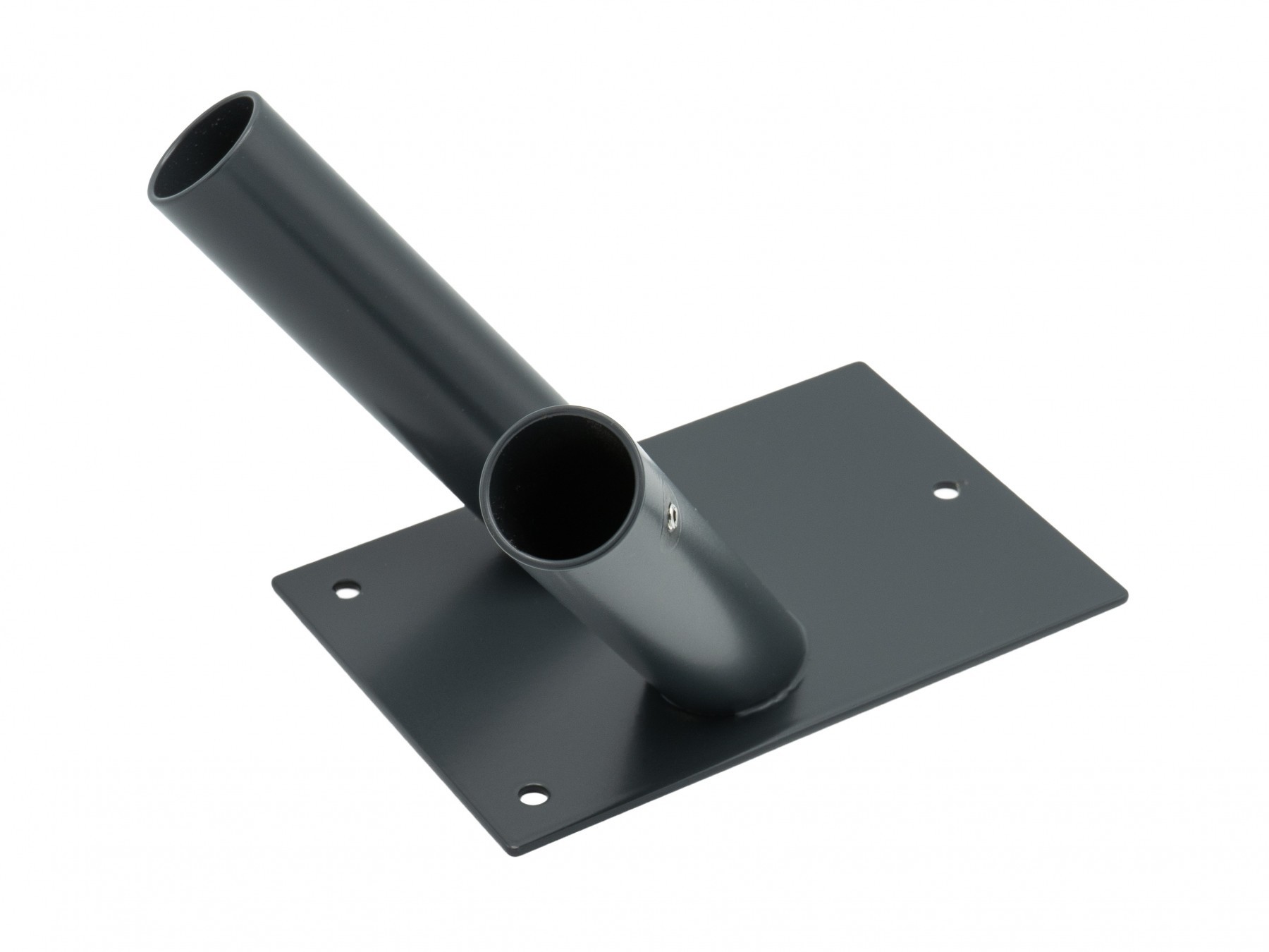 Nerezový fasádní držák na vlajku v moderní antracitové barvě na stěnu se základnou 15x10 cm a třemi otvory na navrtání do fasády. Držáky jsou vhodné na nabízené žerdě. Otvor má průměr cca 2,6 cm. Doporučujeme kovovou žerď s koulí či dřevěnou 2 m žerď.